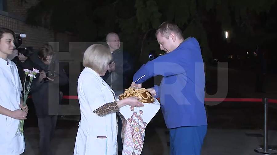 The footage shows Gorbunov getting out of the car to solemn music and loud applause, after which he approaches his colleagues who are meeting him. In their hands they have a loaf on an embroidered towel and flowers. The cameras of the journalists at this moment capture every moment of a warm welcome.