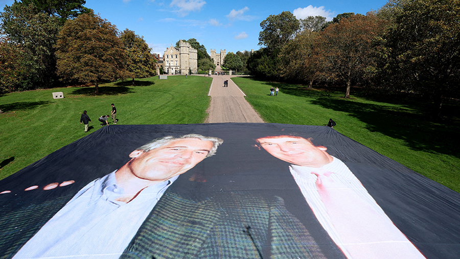 In the UK, a banner with Trump and Epstein was unfurled at Windsor Castle.