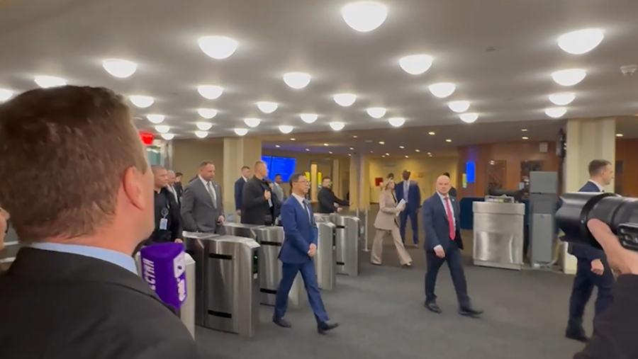 Izvestia's footage shows the Ukrainian leader walking up the stairs after arriving at the building hosting the 80th session of the United Nations General Assembly (UN).