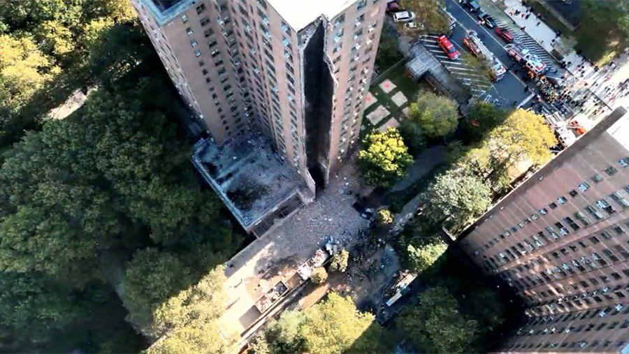 "An explosion occurred in a high-rise building in the Bronx, as a result of which the side of a 20—storey building collapsed," the article says.