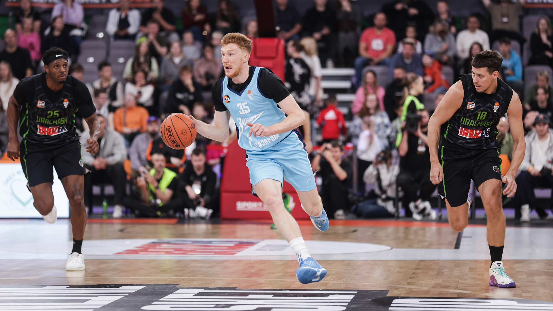 Uralmash's advantage was seen in the continuity of the squad and teamwork, while the guests had the individual skill of the stars, led by Nenad Dimitrievich. However, in the very first attack, the Macedonian received a painful blow to the knee, and his club missed the 7:0 breakthrough. The Blue-white-Blues responded with long-range hits from Zhbanov, Randolph and Vorontsevich, forcing Vergun to react with a timeout. Dimitrijevic returned to the floor towards the end of the quarter (the club's fans could exhale). By that time, the guests were already in full control of the game and finished the first ten minutes with a double-digit advantage.