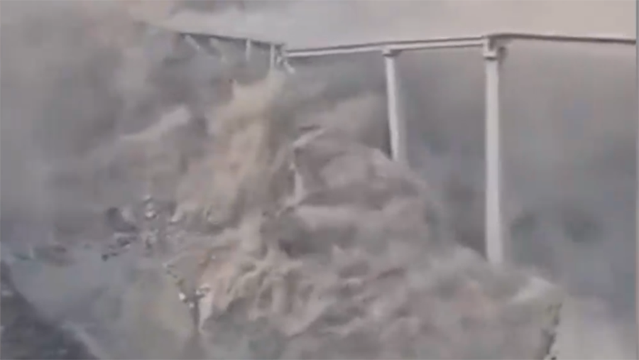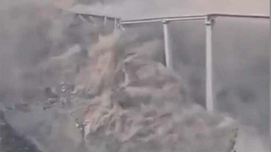 The published footage shows that on Tuesday, the deformation of the slope caused a landslide, as a result of which the roadway and the access bridge collapsed.