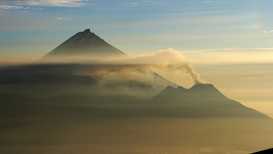 The Nameless volcano in Kamchatka spewed a column of ash up to 5.5 km high.