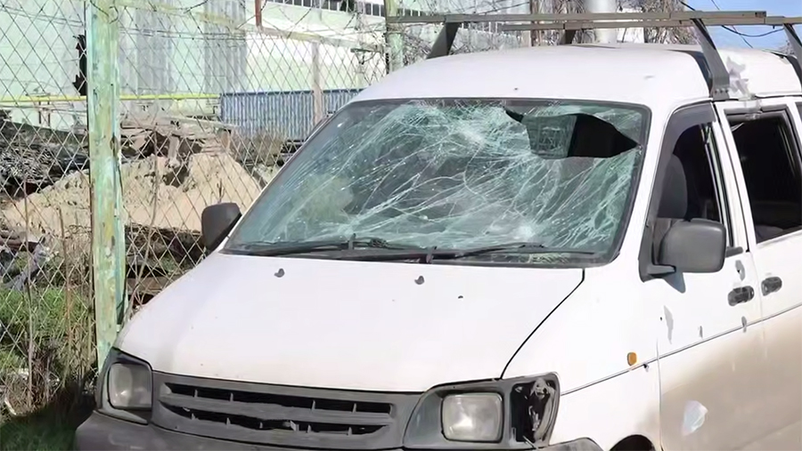 An unmanned attack on the region was reported the day before. The incident occurred on the street, where cars parked nearby were also hit.