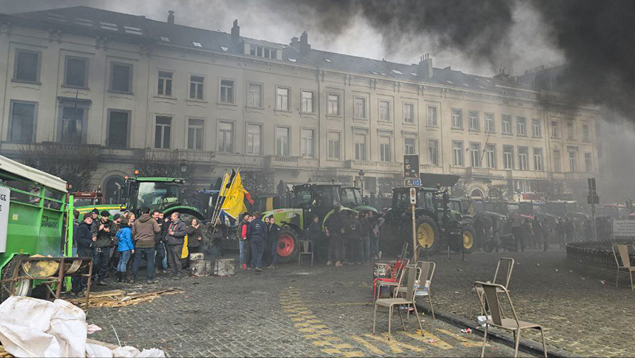 Farmers on tractors tried to break into the European quarter of Brussels