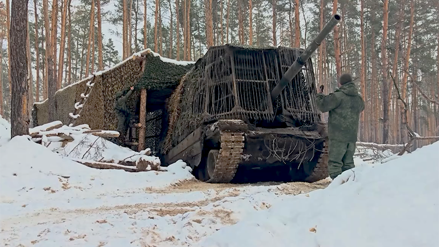 Crews of T-90M "Breakthrough" tanks of the 25th combined arms army of the Zapad group of forces destroyed camouflaged dugouts, control points for unmanned aerial vehicles (UAVs) and manpower of the Armed Forces of Ukraine (AFU) in the Krasnolimansk area in the special military operation zone. This was announced on February 21 by the press service of the Ministry of Defense of the Russian Federation.