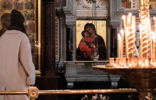 Prayer in front of the Vilna Icon
