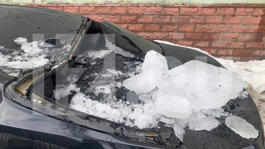 In the center of Moscow, blocks of ice that fell from the roof pierced two cars