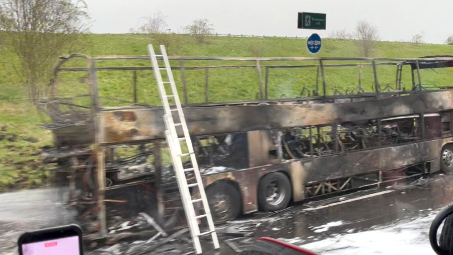 In the UK, a bus carrying Manchester City football fans on their way to Wembley Stadium in London caught fire on the M6 highway. This was reported on March 22 by the Manchester Evening News (MEN) newspaper.