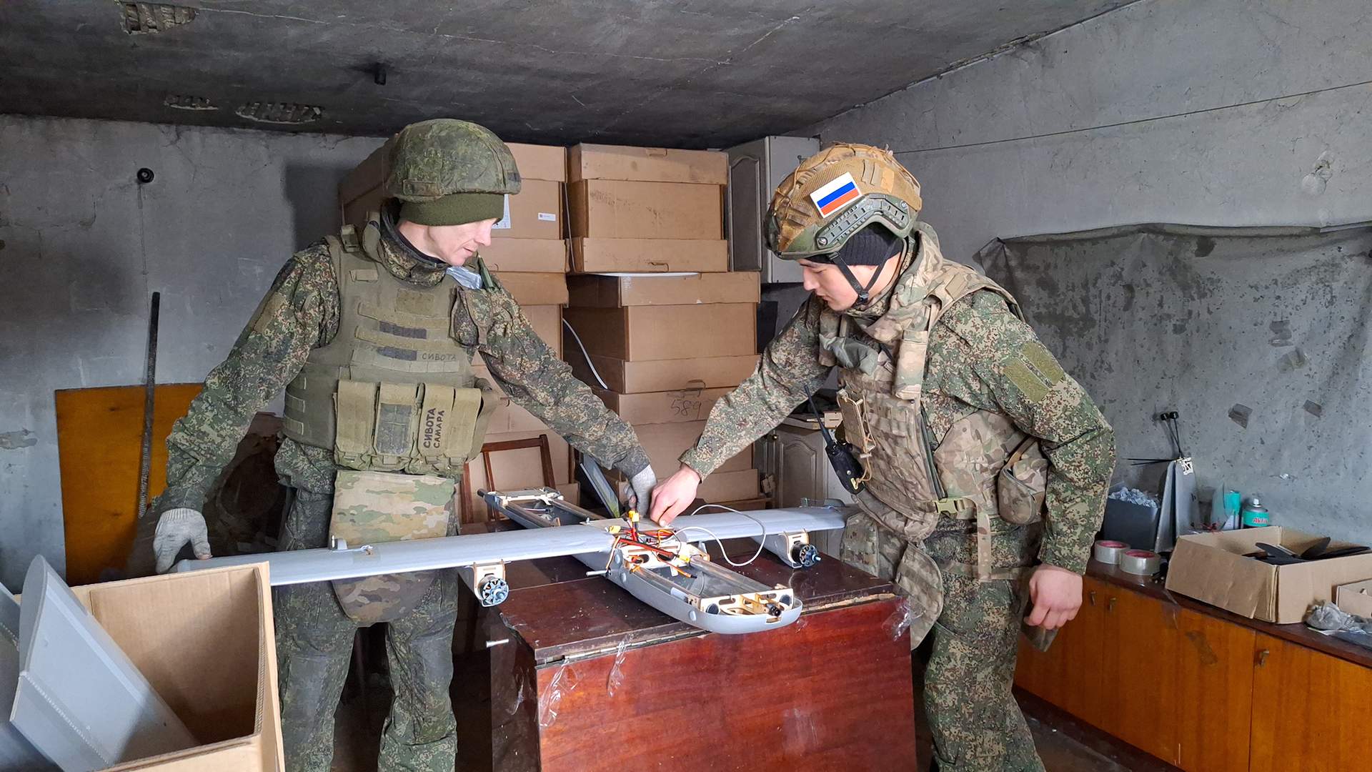 In this section of the line of contact, the sky is oversaturated with radio signals. To ensure that devices from different departments do not interfere with each other, each board requires individual frequency settings. Behind the soldiers are stacks of boxes with new UAVs, reaching up to the ceiling.