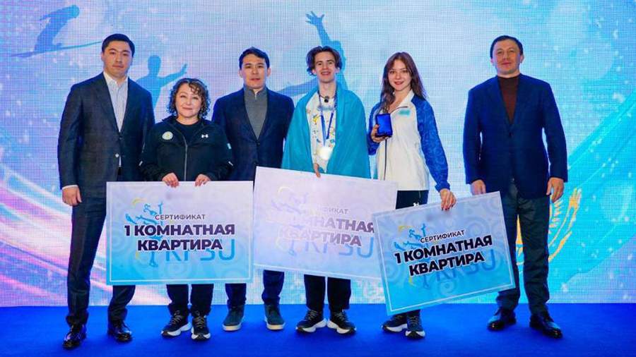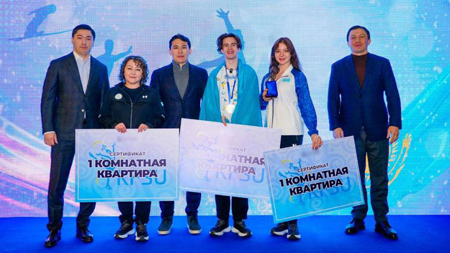The ceremony of handing over housing certificates took place at Astana airport after the return of the national team from Milan. The athletes and coaches were met by Minister of Tourism and Sports of Kazakhstan Yerbol Myrzabosynov, Head of the Kazakhstan Figure Skating Union Bauyrzhan Yeraly and President of the National Olympic Committee Gennady Golovkin.