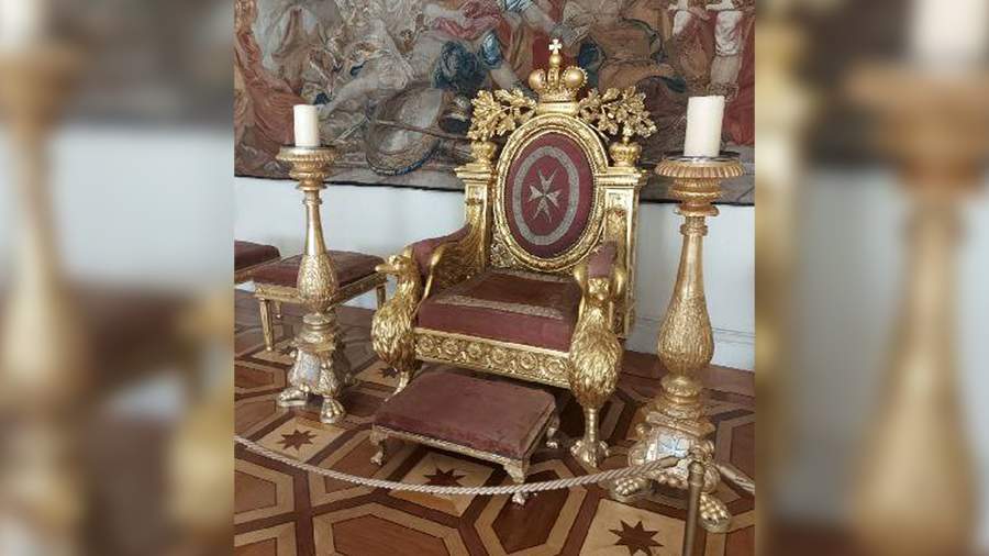 The throne itself was made in 1799-1800 for Emperor Paul I. He took the Order of Malta under his protectorate after the French captured Malta in 1798 and became Grand Master. The throne came to the Hermitage in 1946 from the Museum of Ethnography of the Peoples of the USSR.